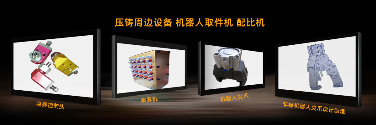 3.壓鑄周邊設(shè)備:脫模劑的噴霧機(jī)、噴霧控制頭、機(jī)器人夾爪、取件機(jī)、壓鑄機(jī)移門(mén)等!